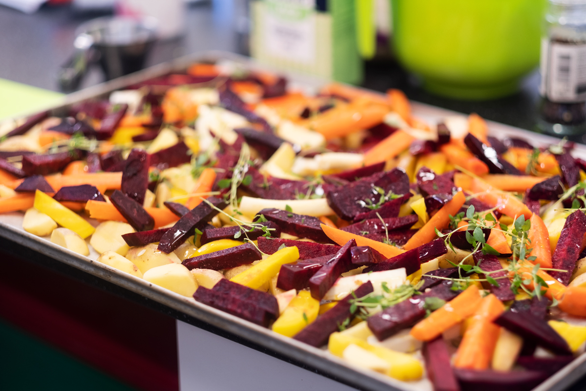 Lägg de på en plåt med rapsolja, salt och nymalen svartpeppar och rosta i ugnen på ca. 180 grader i ca. 20 minuter.