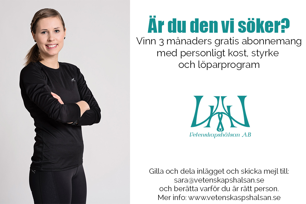 Du kan ansöka t.o.m den 17 mars och vinnaren presenteras därefter på bloggen. Abonnemanget påbörjas första veckorna i april och avslutas efter 3 månader. Dela och gilla detta inlägg och mejla mig och berätta vem du är, ålder, träningsbakgrund och ge mig din motivation till varför du vill delta. Skicka ditt mejl till [email protected] . Besök gärna hemsidan för mer information. www.vetenskapshalsan.se. Välkommen på din resa mot en hälsosammare livsstil!