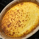 Knäck äggen i en separat bunke, tillsätt mjölk och vaniljpulver och vispa ordentligt. Häll över vätskan i formen så jämnt det går så att alla grynen blir “blöta”.