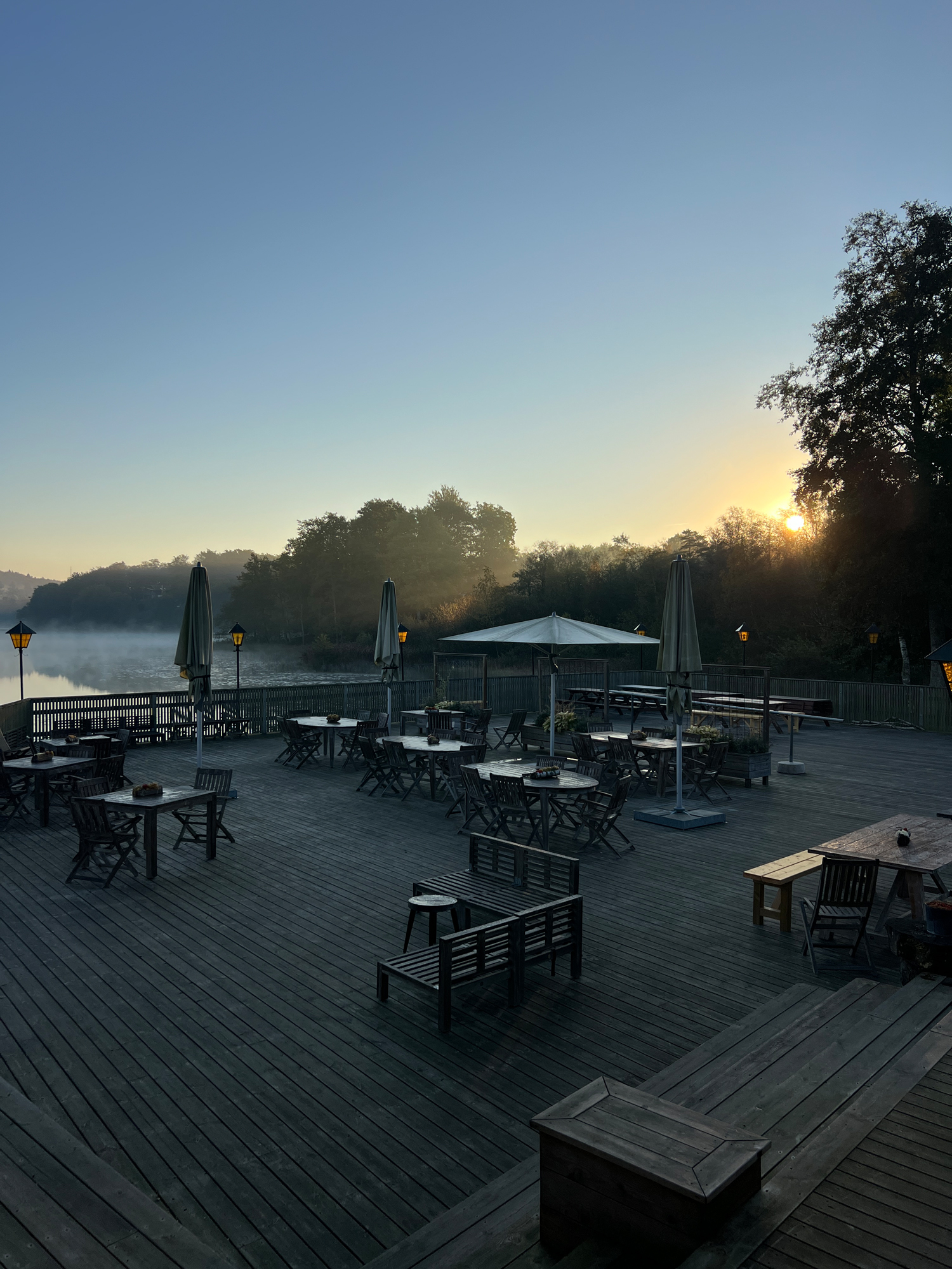 Dagen därpå vaknade vi runt 07.00 för att promenera runt sjön och möta soluppgången i yogasalen. Sara bjöd på mjuk yinyoga med en utsikt över Yasjön. Frukosten smakade extra gott efter morgonens aktiviteter. Under söndagen delade vi upp gruppen i två delar och det bjöds då på en föreläsning med Annica, “Det är inte hur man har det, utan hur man tar det” samt ännu mer yoga med Sara. Den här gången blev fokus på lymfsystemet och andningsövningar. Efter lunch blev det skiftbyte och där efter tränade alla finalpasset tillsammans två och två. Efter många kramar, nya insikter och härligt avslut checkade vi ut från Åkulla.