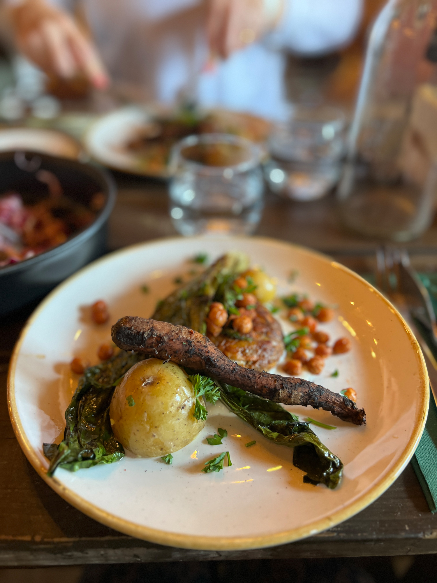 Till middag serverades det sen vildsvin med smak av skogen och rostad krossad potatis toppad med