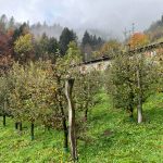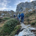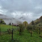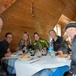 Dagen därpå gav vi oss iväg med shuttle bus till vår start- byn Ornica. Oj vilket taggat gäng vi hade med oss. Trots mörka moln och en del regn så tog vi oss ca 1500 höjdmeter till fots genom små byar, snirkliga skogsvägar, åsnestigar, branta gräsklädda kullar och karga klippiga partier. Lunchen avnöt vi nere i Valtorta, en dalgång på den enda restaurangen- phuu vilken lättnad när vi såg lampornas sken och insåg att den var öppen. Det blev polenta, köttgryta, rostad blomkål, gnocchi och lokala ostar med en speciell nöthonung. Sista etappen blev tuffast för dagen. Med dryga milen i benen innan lunch så hade vi den brantaste delen kvar. Vi började i dalgången, tog oss upp till starten på skidområdet “Bobbio” och följde de tomma pisterna rakt upp. Kalla och väldigt trötta så nådde vi vid femtiden bergshotellet/Rifugot Ratti Cassin som vi skulle bo på för natten. Vårt cykelgäng hade anlänt ca 30 minuter före och var likaså rejält trötta men lyckliga. Vi möttes av en brasa, trerätters middag och skålade för en härlig start på äventyret.