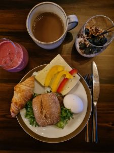 Dagen därpå vaknade vi runt 07.00 för att promenera runt sjön och möta soluppgången i yogasalen. Sara bjöd på mjuk yinyoga med en utsikt över Yasjön. Frukosten smakade extra gott efter morgonens aktiviteter. Under söndagen delade vi upp gruppen i två delar och det bjöds då på en föreläsning med Annica, “Det är inte hur man har det, utan hur man tar det” samt ännu mer yoga med Sara. Den här gången blev fokus på lymfsystemet och andningsövningar. Efter lunch blev det skiftbyte och där efter tränade alla finalpasset tillsammans två och två. Efter många kramar, nya insikter och härligt avslut checkade vi ut från Åkulla.