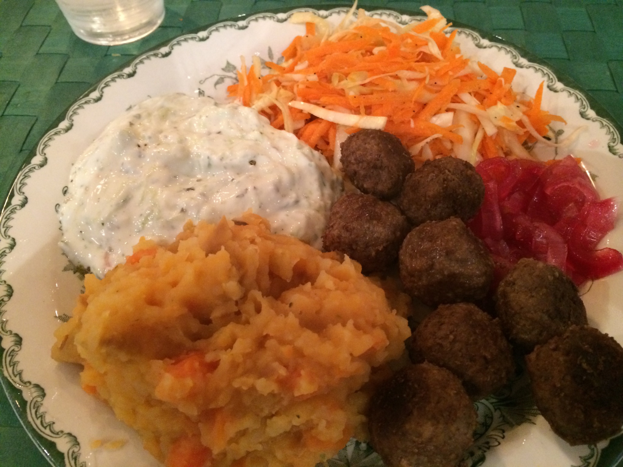 Denna härliga söndag har vi hunnit med en massa höstmys. Promenerat i skogen, syltat rödlök, kokat äpplemos och lagat en härlig söndagsmiddag bestående av nötfärsköttbullar, rotmos ( med potatis, sötpotatis och morot), tzatziki på kvarg och råkostsallad.