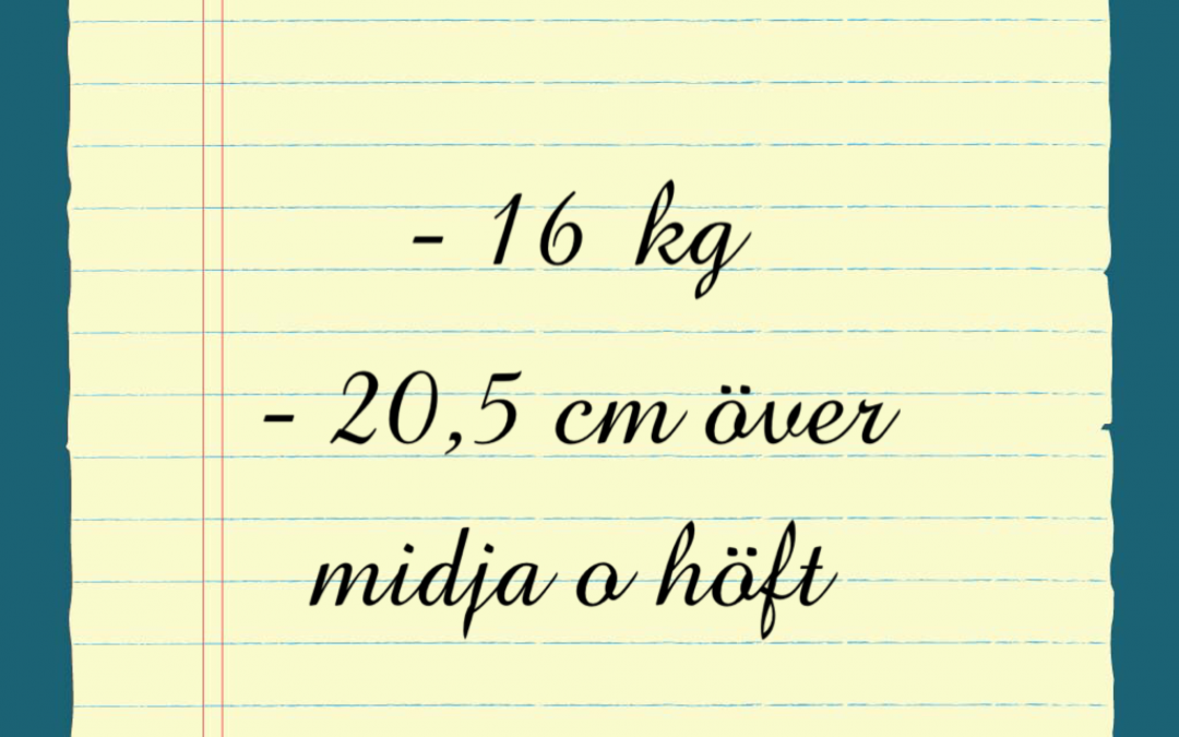 När jag träffade Marie för ca 8 veckor sedan så hade hon själv upp satt upp ett nytt delmål- hon ville gå ner ytterligare 5 kg fram till jul. Min första tanke var att det nog kommer bli svårt. Dels för att hon hade gått ner mycket i vikt på relativt kort tid samt att innan jul ligger december månad. Inte den lättaste månaden att gå ner i vikt på. Men trots december månad, trots en kortare förkylning och trots en ofrivillig vilovecka pga av en ond rygg har Marie gått ner 16 kg (och samtidigt byggt upp och ökat sin muskelmassa), minskat 9 cm i midjan och 11.5 cm över höften och faktiskt nästan gått ner sina 5 kg (4,6 kg) innan jul. Marie har ett driv och en vilja som kommer göra att hon kommer nå sina mål. Det gäller att bestämma sig och sen genomföra. Att sätta upp små delmål med sikte på slutmålet. Att ha tålamod och inte ge upp bara för att det ibland går lite långsammare än man tänkt sig.