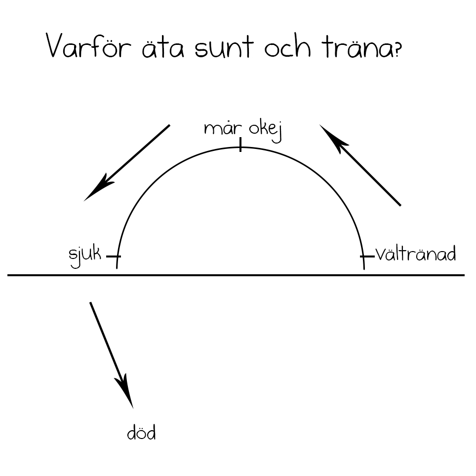 Vare sig du vill tro det eller ej så är träning och bra kost den absolut billigaste metoden för att må bra och öka chanserna till ett långt och friskt liv. Tyvärr säljer tidningarna inte lika många löpsedlar på den här “metoden”. Att investera i sig själv med dessa enkla insatser är förmodligen det smartaste du kan göra och mer lönsamt än varenda pensionsförsäkring, lyckopiller eller pulverdiet i hela världen. Ligger man i riskzonen för andra sjukdomar kopplat till livsstilen så är nyttan av att träna och äta bra ännu större. Det gäller även stress, depression och utmattningssjukdomar. Så ju sämre förutsättningar du har desto viktigare är det att just du börjar ta hand om dig själv.