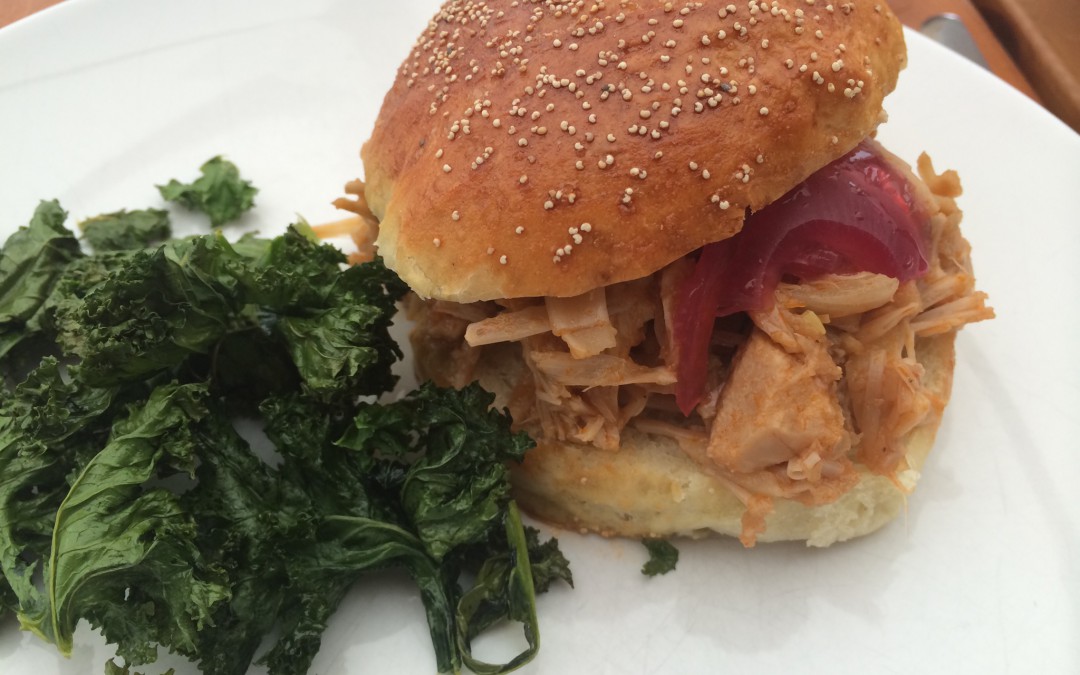 Denna helgen har vi tillbringat uppe i Bohuslän tillsammans med goda vänner. Vi har haft pysselhelg vilket innebär trevligt sällskap, pyssel och god mat. Detta var första gången vi själva tillagade Pulled Jackfruit och det var förvånansvärt enkelt. Vi åt det tillsammans med bröd, syltad rödlök och grönkålschips. Blev jättegott!