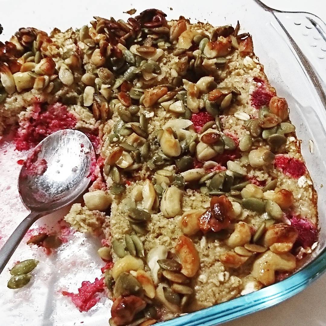 Favoritfrulle delux! Ugnsbakad knaprig gröt med hallon, himmelriket i frukostvärlden. Det bästa är att jag ska äta den här även till mellis kl. 10.00 och kl. 15.00 idag!