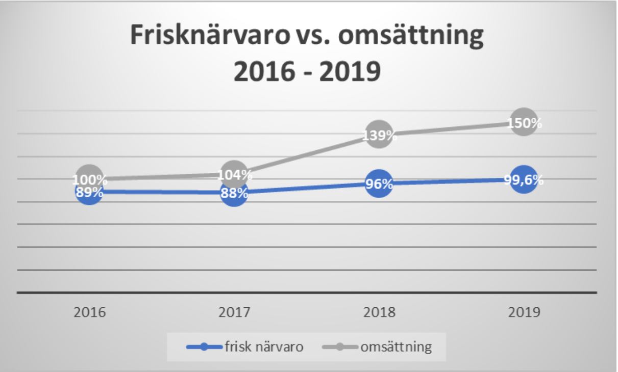 Att kunna se hur deras omsättning ökar i takt med att också deras frisknärvaro minskar det är otroligt kul och något vi hoppas på att många fler ska förstå vikten av och erbjuda sina anställda dessa möjligheterna.