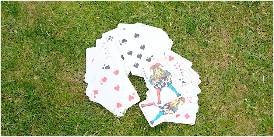2. Ställ er i en ring med kortleken placerad i mitten. Första personen drar ett kort och gör det antalet repetitioner av övningen som symbolen motsvarar. Är det t.ex klöver 5 så gör den personen 5 stycken situps. Där efter är det nästa persons tur att ta översta kortet. Fortsätt så här tills kortleken är slut. Ess betyder 14 och inte 1. Vill man ha ganska enkla regler så nöjer man sig med dessa olika momenten och reglerna. Vill man utveckla spelet lite kan man kika vidare på punkt 3 och 4.
