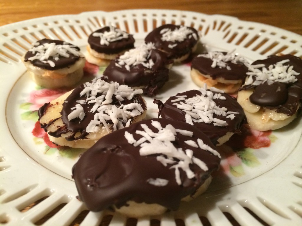 Frys in och doppa sen i choklad, strö på kokos.
