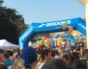 Efter en frukost med fantastisk vy går vi ned till Piazze Brà för att visa upp läkarintyg och få våra startnummer. Solen skiner, uteserveringerna är fulla och Verona Arenan ligger som en historisk vacker fondvägg. Wow.